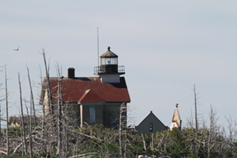 Pilot Island Lighthouse: dead trees courtesy of cormorant guano